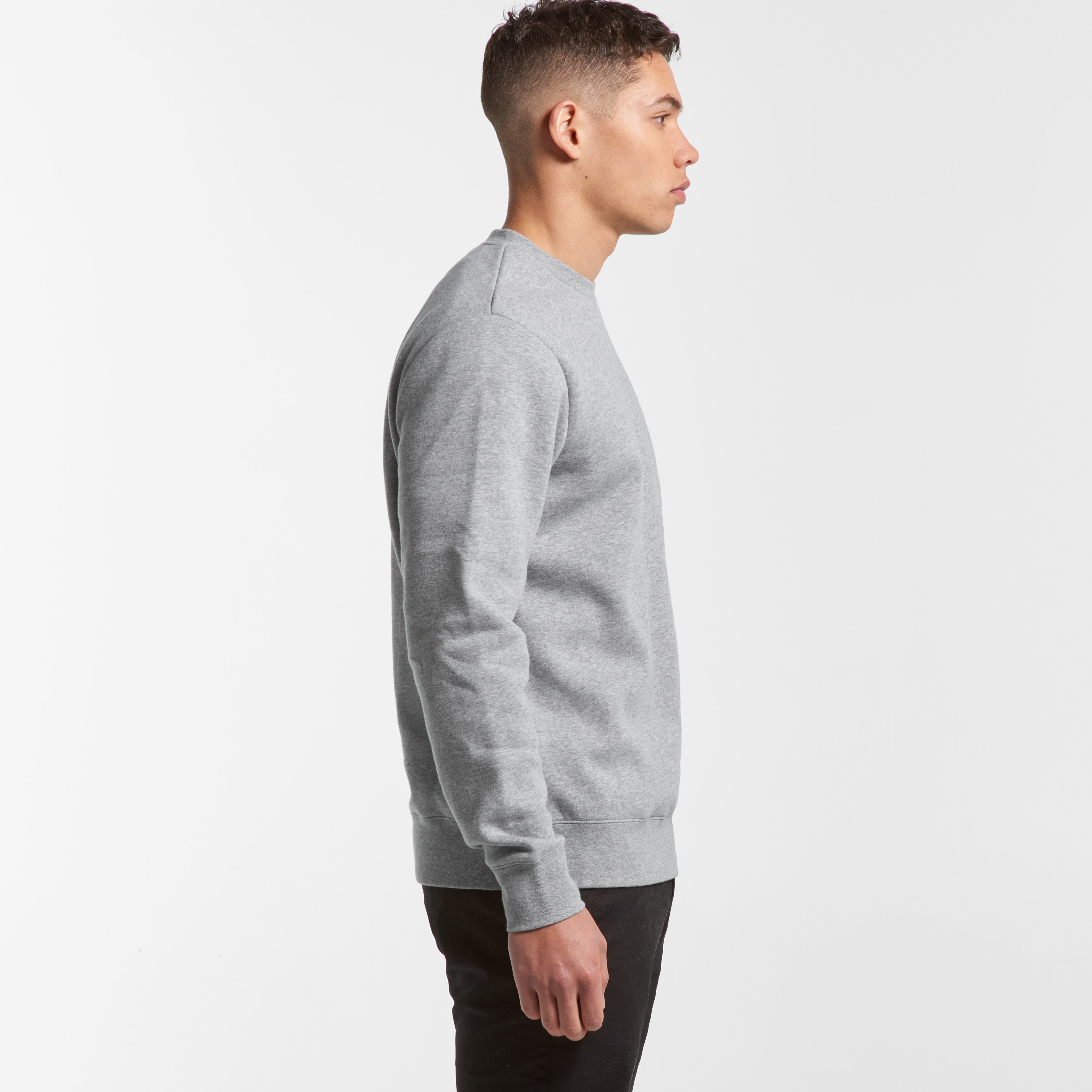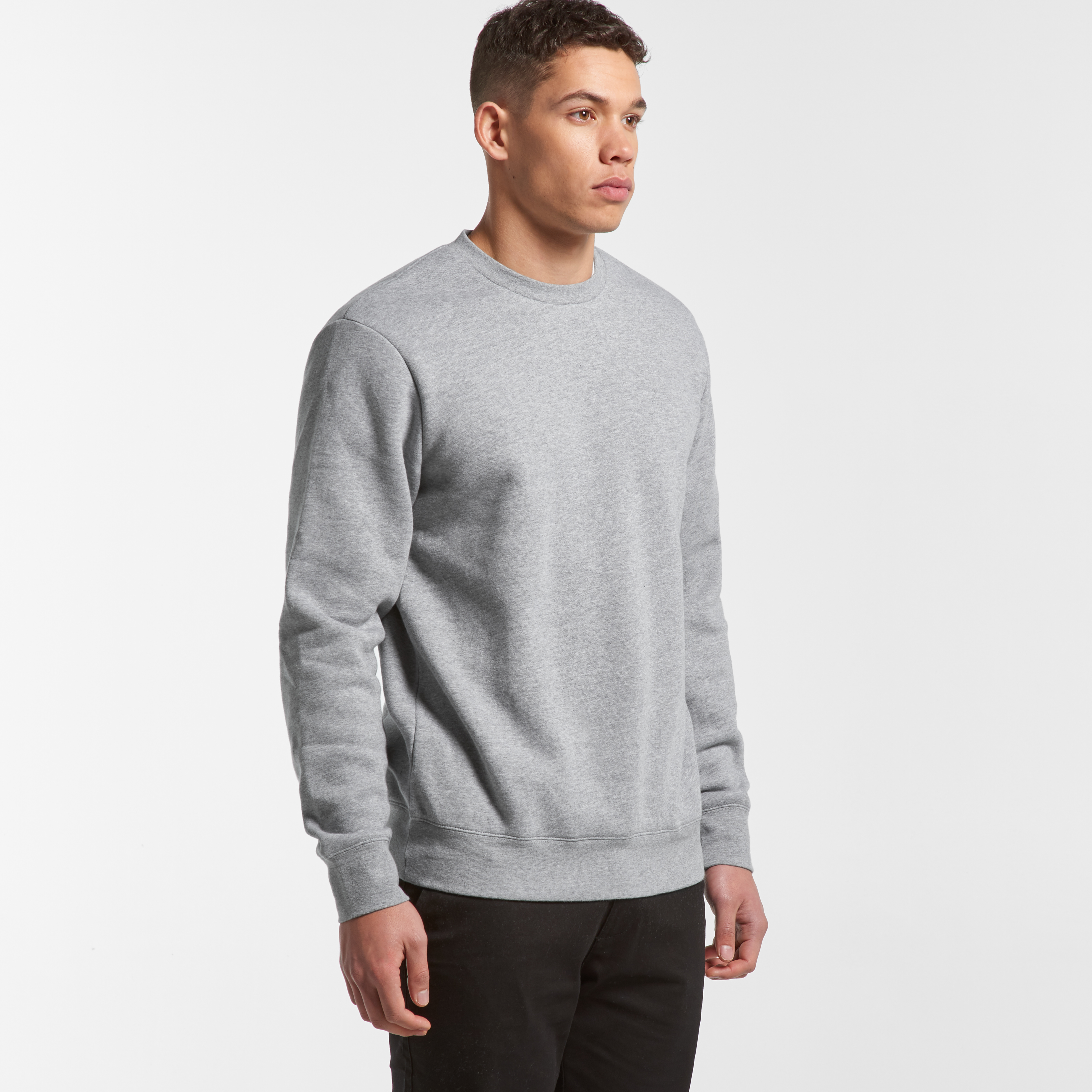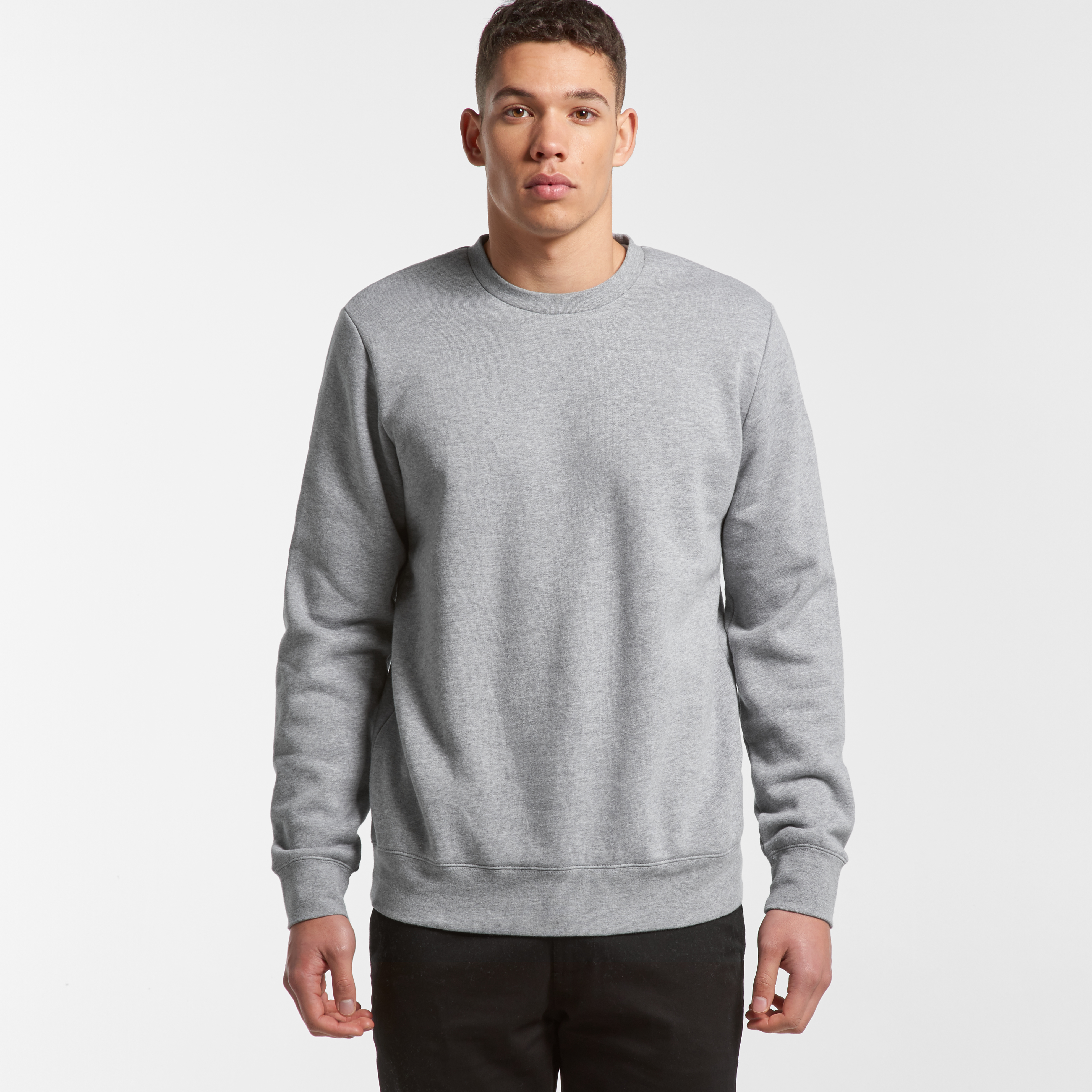 Crew neck Mid-weight, 180 GSM 100% combed cotton (marles 15% polyester) Neck ribbing, side seamed, shoulder to shoulder tape, double needle hems, preshrunk to minimise shrinkage