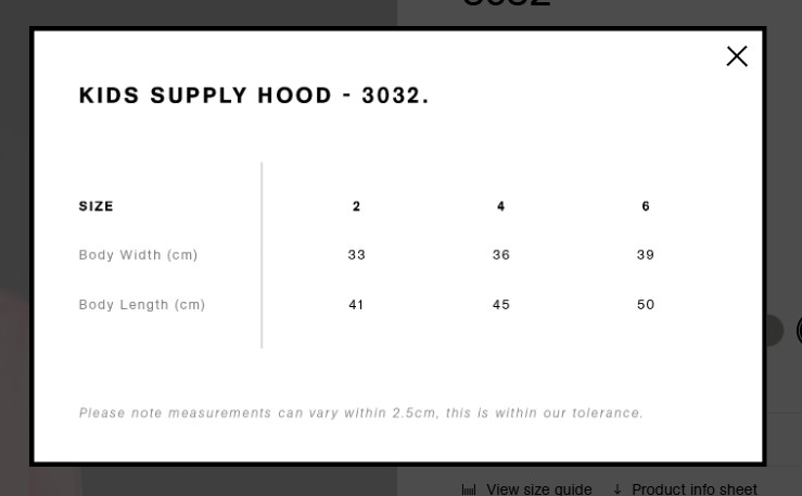 Size Specification